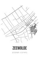 Zwart-witte landkaart, stratenplan of plattegrond van Zeewolde. Zeewolde is gelegen in de gemeente Zeewolde, provincie Flevoland. Op de stadskaart zijn alle openbare wegen in Zeewolde opgenomen. Verder is de kaart voorzien van de coördinaten van het centrum van Zeewolde.