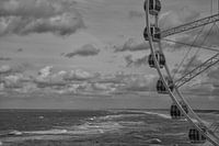 Het uitzicht over de noord zee en het strand vanaf de pier van Scheveningen richting Noordwijk.