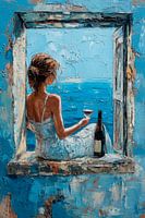 Een zacht zomerbriesje waait door het open raam, terwijl een elegant silhouet in een witte jurk geniet van de rust van de oceaan. Met een glas wijn in haar hand en uitzicht op de glinsterende golven verzinkt ze in gedachten terwijl de zachte kleuren van de zee een harmonieuze achtergrond vormen. Joie de vivre en sereniteit komen samen…