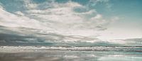 een blik op de Noordzee , breed panorama onder een bewolkte hemel