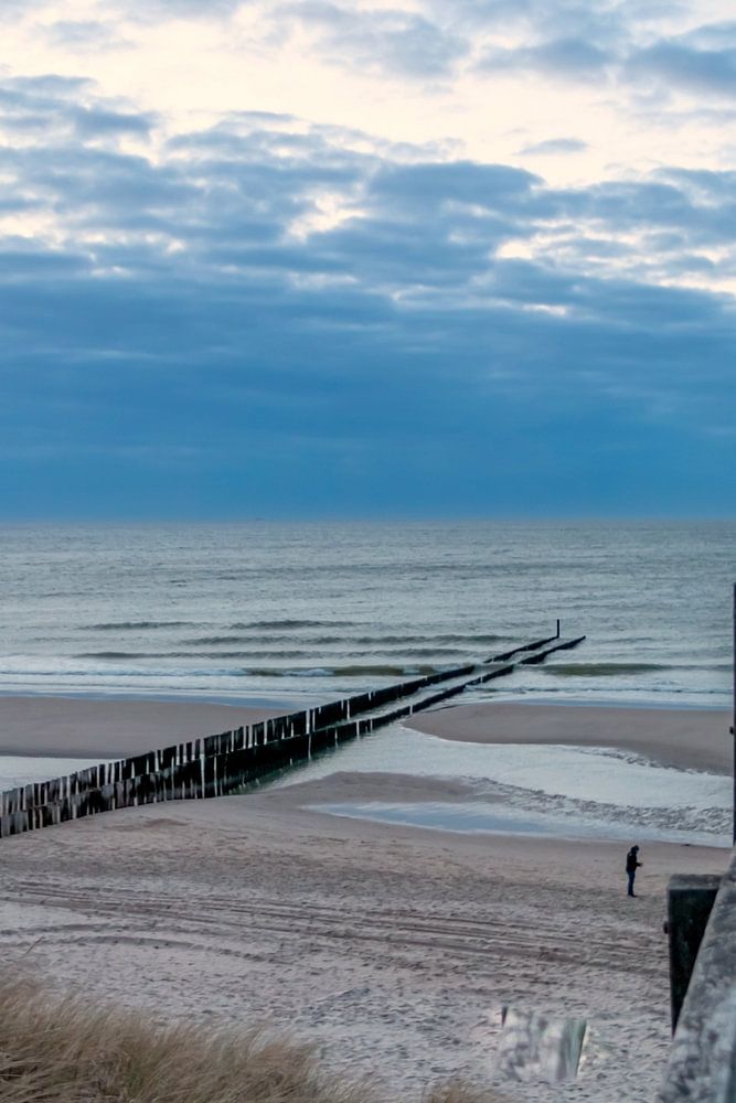 En hier is een vakantie met uitzicht op zee voor je eigen vier muren. Het stormachtige en ruige weer onthult een magisch zandstrand met een ongelooflijk uitzicht op zee en winterharde zeeliefhebbers die niet onder de indruk zijn van wind en wolken. Pure romantiek en een garantie tegen zeeziekte!