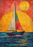 Ontdek de magische symbiose van zeilboot, zee en maan in ons indrukwekkende kunstwerk. De maritieme scène vangt de harmonieuze verbinding tussen de majestueuze oceaan en de mystieke maan, die elke kijker betovert.