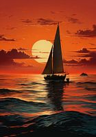 Ontdek de magische symbiose van zeilboot, zee en maan in ons indrukwekkende kunstwerk. De maritieme scène vangt de harmonieuze verbinding tussen de majestueuze oceaan en de mystieke maan, die elke kijker betovert.