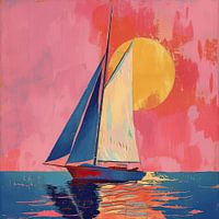 Ontdek de magische symbiose van zeilboot, zee en maan in ons indrukwekkende kunstwerk. De maritieme scène vangt de harmonieuze verbinding tussen de majestueuze oceaan en de mystieke maan, die elke kijker betovert.