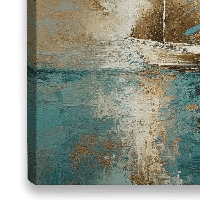 Zeilboot abstract in goud en blauw