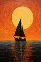 Dit werk vangt de essentie van een zeilboot in een abstracte stijl, waarbij vloeiende lijnen en zachte kleuren een gevoel van vrijheid en beweging oproepen. De zeilboot lijkt te dansen over het water, waardoor het een gevoel van avontuur en rust uitstraalt. De eenvoud van de vormen en het subtiele kleurgebruik zorgen voor een eigentijdse uitstraling, perfect voor een moderne ruimte. Dit werk spreekt tot de verbeelding en nodigt de kijker uit om zich mee te laten voeren op een kalme, serene reis over het water.