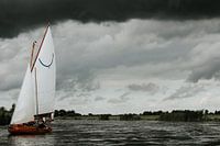 Vlak voordat de regenbui kwam, voer dit eenzame zeilbootje over de Langweerderwielen in Friesland.