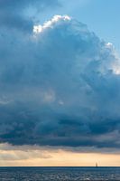 Aan de Cubaanse horizon vaart aan het einde van een warme en broeierige dag een bootje weg, de vrijheid in. De samenpakkende wolken komend dreigend over, waarschijnlijk zien we regen later op de avond. Maar na die donkere wolken, komt zonneschijn. De zonnestralen schijnen al door het wolkendek heen.