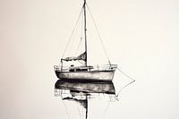 Een zacht zeilbootje glijdt kalm over reflecterend water, omringd door de stilte van de zee. De fijne lijnen en het elegante ontwerp stralen sereniteit uit en nodigen uit tot dromerige gedachten. Ideaal voor de woonkamer of slaapkamer, het creëert een sfeer van ontspanning en verlangen naar avonturen op volle zee.