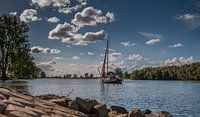 Een zeilboot op de rivier de Maas bij Gewande, tijdens de eerste dag van de herfst