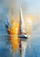 Zeilboot in gouden licht - Abstract olieverfschilderij van Niklas Maximilian