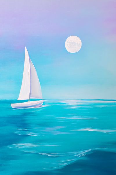 Koop dit landschapskunstwerk Zeilboot in het licht van een nacht met volle maan van Poster Art Shop als print op canvas, aluminium dibond, (ingelijste) fotoprint, behang en ArtFrame. Voor jou op maat geprint in Fine-Art kwaliteit.