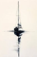 Een elegante zeilboot glijdt zachtjes over het kalme wateroppervlak, omgeven door een subtiel spel van licht en schaduw. Het minimalistische zwart-witte ontwerp straalt een rustgevende helderheid uit die perfect is voor een slaapkamer of woonkamer waar ontspanning en dromen kunnen gedijen. Een stijlvolle uitdrukking van vrijheid en vrede.