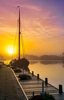 Zeilboot aan het water in de vroege ochtend bij Eernewoude. Prachtige sfeer en gemoedstoestand deze ochtend.