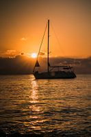 In griekenland met een ochtendwandeling langs het strand kwam ik bij de zonsopgang dit zeilschip tegen wat zo'n mooi rust uitstraalde.