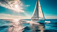 Zeilboot op zee met zonnestralen