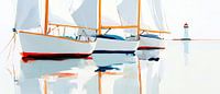 Zachte golven en majestueuze zeilen geven een gevoel van vrijheid en avontuur. De harmonieuze kleuren, aangevuld met de rode vuurtoren aan de horizon, stralen rust uit en nodigen uit om te dromen. Dit kunstwerk is perfect voor de woonkamer, waar het gesprekken stimuleert en een ontspannen sfeer creëert.