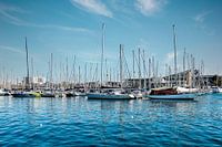 Jachthaven vol jachten in Barrcelona, Spanje. De Port Vell, of Oude Haven, ligt aan de voet van Las Ramblas, de belangrijkste toeristische route van Barcelona. Het is gerenoveerd tot een jachthaven van wereldklasse voor superjachten en megajachten. Port Vell Marina beschikt over 151 ligplaatsen voor superjachten die plaats bieden aan schepen tot 190 meter lang.De Port Vell Marina maakte deel uit van het stedelijke renovatie-initiatief dat plaatsvond voorafgaand aan de Olympische Spelen van Barcelona in 1992.Het is nu een populaire toeristische bestemming, die elk jaar meer dan 15 miljoen bezoekers trekt.Veel superjachten en boten noemen het thuis, en booteigenaren worden aangemoedigd om gebruik te maken van de 5-sterrenfaciliteiten van het gebied.