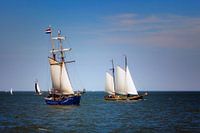 Twee zeilboten op het IJsselmeer op de zonnige lentedag van 30 april 2017. Ik was net vertrokken vanuit de havenstad Medemblik naar Enkhuizen, toen deze twee zeilboten langszij kwamen.