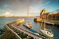 Deze foto is op dezelfde plek gemaakt als een ander werk in mijn portfolio: 'Haven Veere'. Deze foto is genomen in Veere, Zeeland, Nederland. Het mooie licht valt hier schitterend op het Bastion aan het begin van de haven. Op de achtergrond het Veerse Meer. De zeilboten geven een extra dimensie aan de foto. Gefotografeerd vanaf de vestingswal.