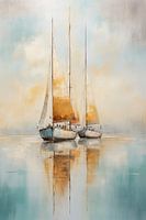 Zeilboten in bruine en blauwe tinten