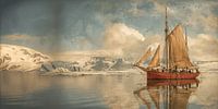 Een klassieke kleine zeilboot voor de ijsbergen even in slow motion