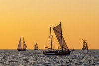 Zeilschepen in de zonsondergang bij de Hanse Sail in Rostock.