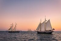 Zeilschepen in de zonsondergang bij de Hanse Sail in Rostock.