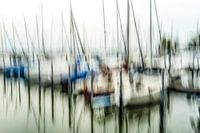 Abstractie vage zeilschepen in jachthaven in Friedrichshafen aan het Bodenmeer in Duitsland in de zomer