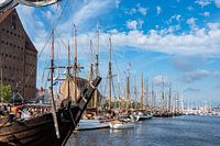Zeilschepen bij de Hanzezezezeilboot in Rostock.