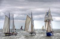 Tussen Terschelling en Harlingen was het een drukte van belang op 10 juni 2018 op de Waddenzee. Veel zeilschepen gingen richting Harlingen op de laatste feestelijke dag. Aan de rechterkant zie je de topzeilschoener Fortuna. Vanaf de veerboot was dit een prachtig schouwspel, de Waddenzee vol met zeilschepen! Deze drie mooie historische zeilschepen naast elkaar geven een extra dimensie aan dit beeld.