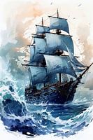 Retro zeilschip illustratie concept ontwerp kunstwerk