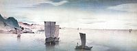 Japanse kunst, Japan, wabi-sabi, Aziatische kunst, vintage, retrostijl, oude meesters, zee, boot, schip, vissen, natuur, zeegezicht.