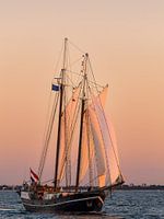 Zeilschip in de zonsondergang bij de Hanse Sail in Rostock.