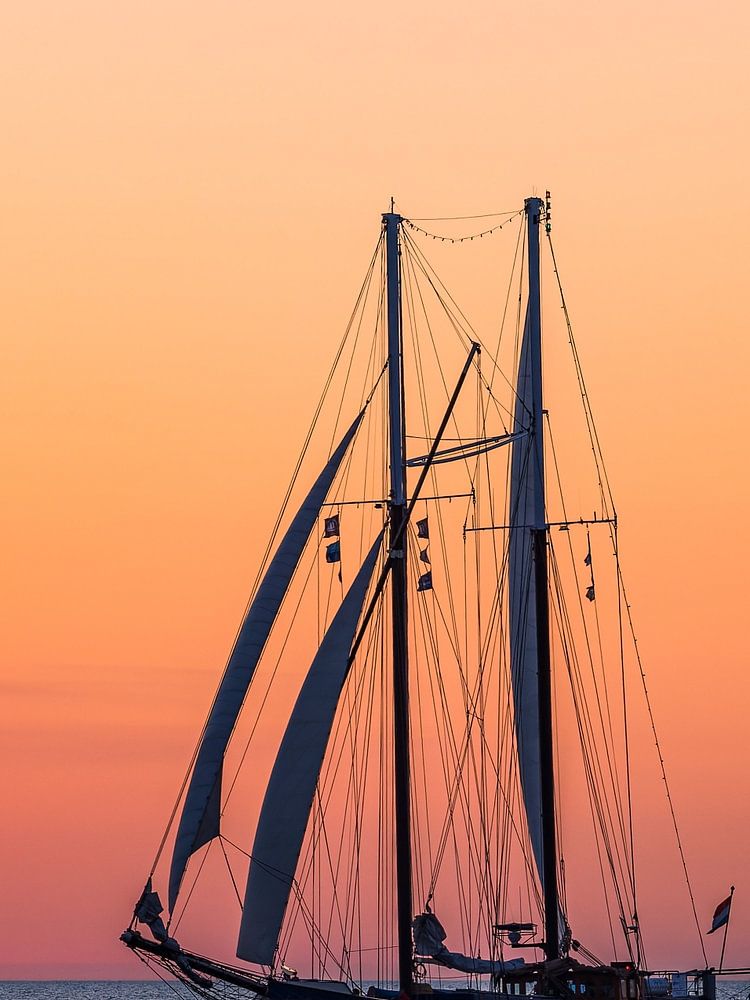 Zeilschip in de zonsondergang bij de Hanse Sail in Rostock.