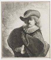 Zelfportret met hoed met slappe rand en geborduurde mantel, Rembrandt van Rijn van Ed z'n Schets