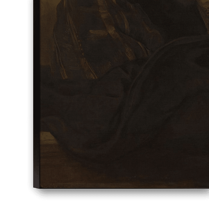 Dit zelfportret op 34-jarige leeftijd, geschilderd door de beroemde Nederlandse kunstenaar Rembrandt van Rijn, is een meesterwerk dat de diepte van zijn talent en introspectie weerspiegelt. Het schilderij toont Rembrandt in een intieme en contemplatieve pose, waarbij zijn doordringende blik direct contact maakt met de kijker. Zijn gezichtsuitdrukking is een combinatie van ernst en zelfvertrouwen, waarbij elke penseelstreek de innerlijke complexiteit van de kunstenaar lijkt vast te leggen.
