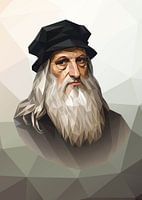 Zelfportret van Leonardo da Vinci Low Poly van Low Profile