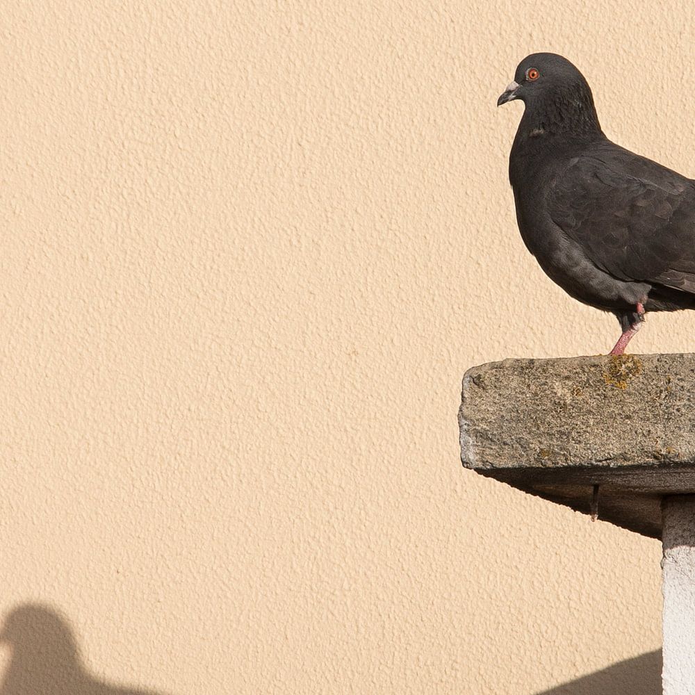 Hoewel zelfreflectie vaak een lastig onderwerp is, was het in dit geval van de duif een makkie. Hij hoefde er alleen maar naar te kijken en hij wist wie hij was. De schaduw geeft een mooie compositie aan het geheel. Ik heb deze foto bewust in vierkant uitgesneden.