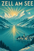 Deze Art Deco geïnspireerde Zell am See reisposter toont het serene alpenmeer omringd door besneeuwde bergen. In het midden komt de zon op boven de bergtoppen en werpt gouden reflecties over het kalme water en benadrukt het pittoreske dorpje aan de oever. Zell am See staat bekend als een juweel van Oostenrijk en biedt het hele jaar door prachtige natuur en buitenactiviteiten, van skiën en wandelen tot zeilen en relaxen aan het meer. De levendige blauwe en gouden tinten van de poster vormen een opvallend contrast, terwijl de strakke gestileerde lijnen de charme van vroeg 20e-eeuwse reiskunst uitstralen. Dit kunstwerk is ideaal voor iedereen die houdt van alpine schoonheid, wintersport of de Oostenrijkse cultuur. Of het nu in een modern huis, kantoor of berghut is, de Zell am See poster voegt elegantie, reislust en een nostalgische geest van avontuur toe aan elke ruimte. Een perfect stuk voor reizigers en designliefhebbers.
