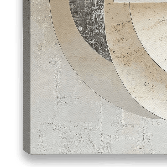 Zen Kunst - Dit moderne kunst schilderij toont zachte, gebogen vormen en subtiele lijnpatronen die samenvloeien tot een ontspannend, beige kleurenpalet, perfect passend bij een rustige en Zen-geïnspireerde interieurinrichting.