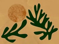 Een abstract minimalistisch kunstwerk in zen-stijl in beige, goud en geel.