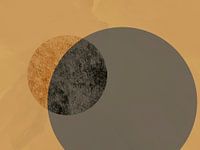 Een abstract minimalistisch kunstwerk in zen-stijl in beige, goud en grijs.