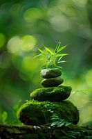 Zen balans - steen op mos met bamboe van Poster Art Shop