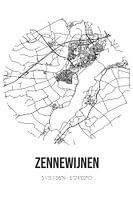 Zwart-witte landkaart, stratenplan of plattegrond van Zennewijnen. Zennewijnen is gelegen in de Betuwe, in de gemeente Tiel, provincie Gelderland. Op de stadskaart zijn alle openbare wegen in Zennewijnen opgenomen. Verder is de kaart voorzien van de coördinaten van het centrum van Zennewijnen.