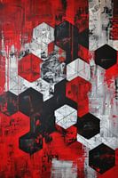 Dit fascinerende kunstwerk maakt gebruik van de structuur van honingraten om een dynamische en energieke compositie te creëren. De gedurfde rode, zwarte en grijze kleuren en geometrische vormen creëren een spannend visueel spel dat zowel kracht als structuur uitstraalt. Ideaal voor liefhebbers van abstracte kunst die gedurfde kleuren en geometrische ontwerpen waarderen. Dit werk brengt moderne elegantie en een intense sfeer in elke kamer, perfect voor een opvallend en stijlvol interieur.
