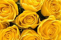 Bovenaanzicht van een boeket met zeven gele rozen