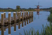 Tijdens het blauwe uurtje gemaakt, waarbij de steiger je blik als een leidend lijn naar de molen voert.