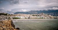 Vanaf de pier, die lijdt naar daar waar de vissersboten aankomen, heb je een prachtig zicht op Altea. Een van de mooiste plaatsjes aan de Costa Blanca. Op de achterliggende bergkam "de Bernia" ligt een fraaie witte wolken partij.