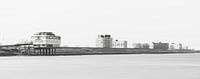 De foto is in zwart-wit en gemaakt met een lange belichting waardoor het water "glad" wordt en de lucht egaler.